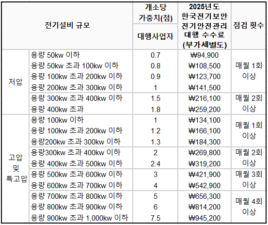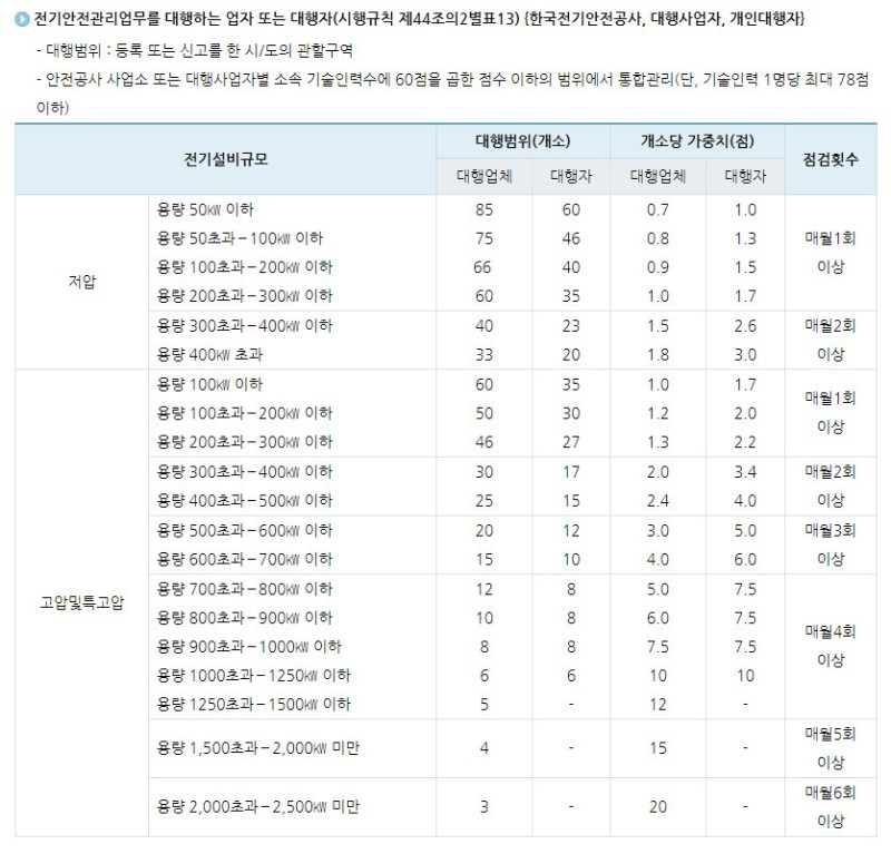 전기안전관리 대행에 대한 선임점수와 점검횟수 그리고 수수료 안내해드립니다.